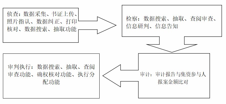 總體定位:以審判為中心,立足司法辦案實際,充分運用信息化手段,節(jié)約司法資源,提高辦案效率,促進規(guī)范司法, 化解重大風(fēng)險,加強社會治理,全面提升涉眾型經(jīng)濟犯罪的懲防效果